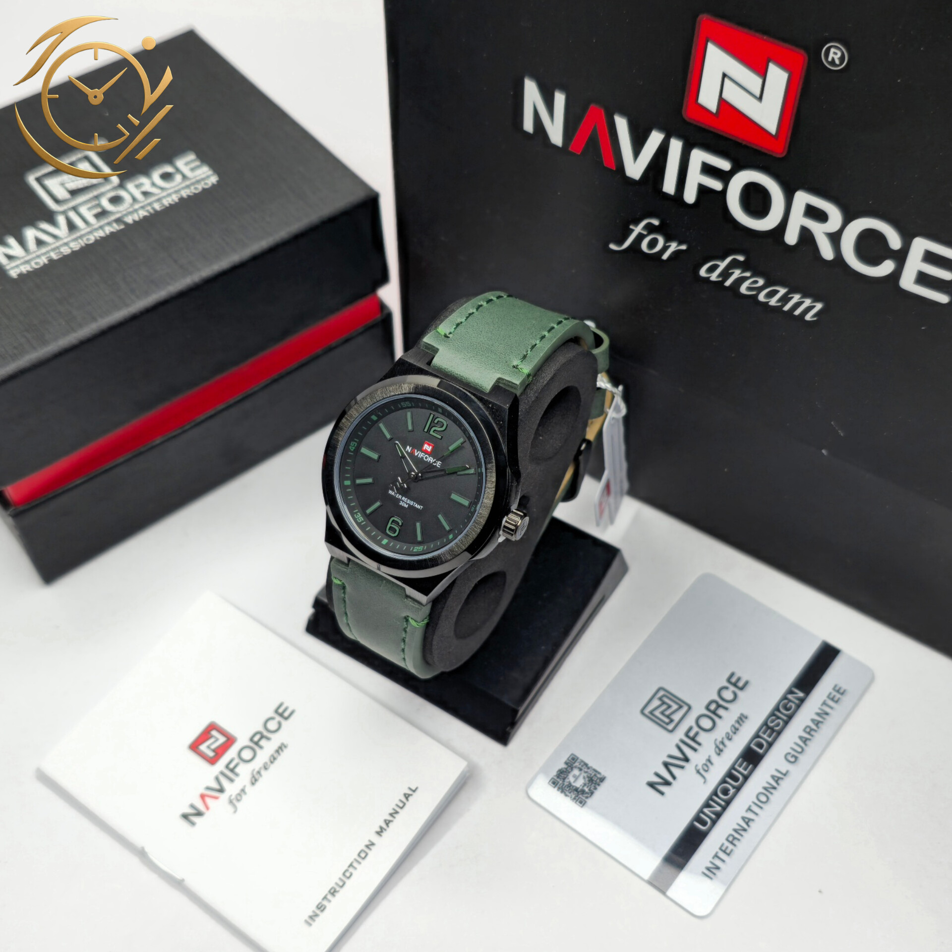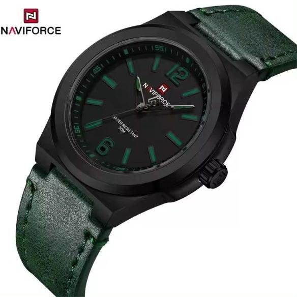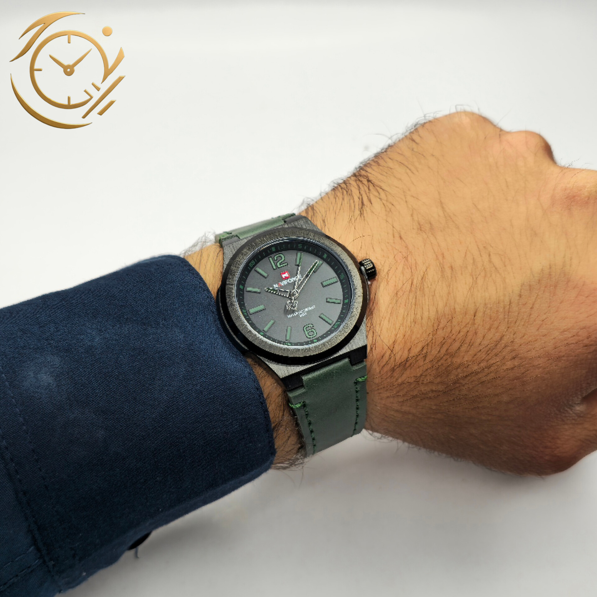 ساعت مچی مردانه Naviforce مدل NF9233 انتخابی جذاب برای آقایانی است که به طراحی اسپرت، خاص و روزمره اهمیت میدهند. صفحه مشکی در کنار قاب مشکی و بند چرمی سبز، ترکیبی چشمگیر و متفاوت ایجاد میکند که بهراحتی با استایلهای خیابانی، کژوال و روزمره ست میشود.این مدل به موتور کوارتز دقیق Naviforce مجهز شده و عملکردی قابل اعتماد در استفاده روزمره ارائه میدهد. بند چرمی سبز با دوخت تمیز و کیفیت مطلوب، راحتی و دوام مناسبی برای استفاده طولانیمدت فراهم میکند. طراحی خوانا و دقیق صفحه با عقربههای واضح، تجربه استفاده ساده و لذتبخشی را رقم میزند.اگر بهدنبال ساعتی خوشساخت، متفاوت و با کیفیت برای تکمیل استایل روزانهات هستی، Naviforce NF9233 میتواند انتخابی هوشمندانه و چشمنواز باشد.