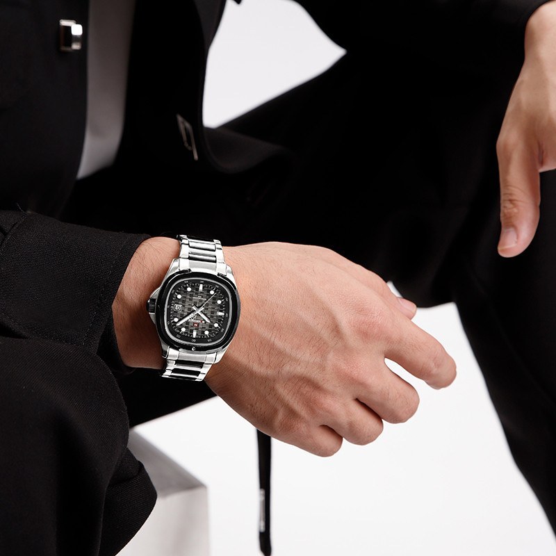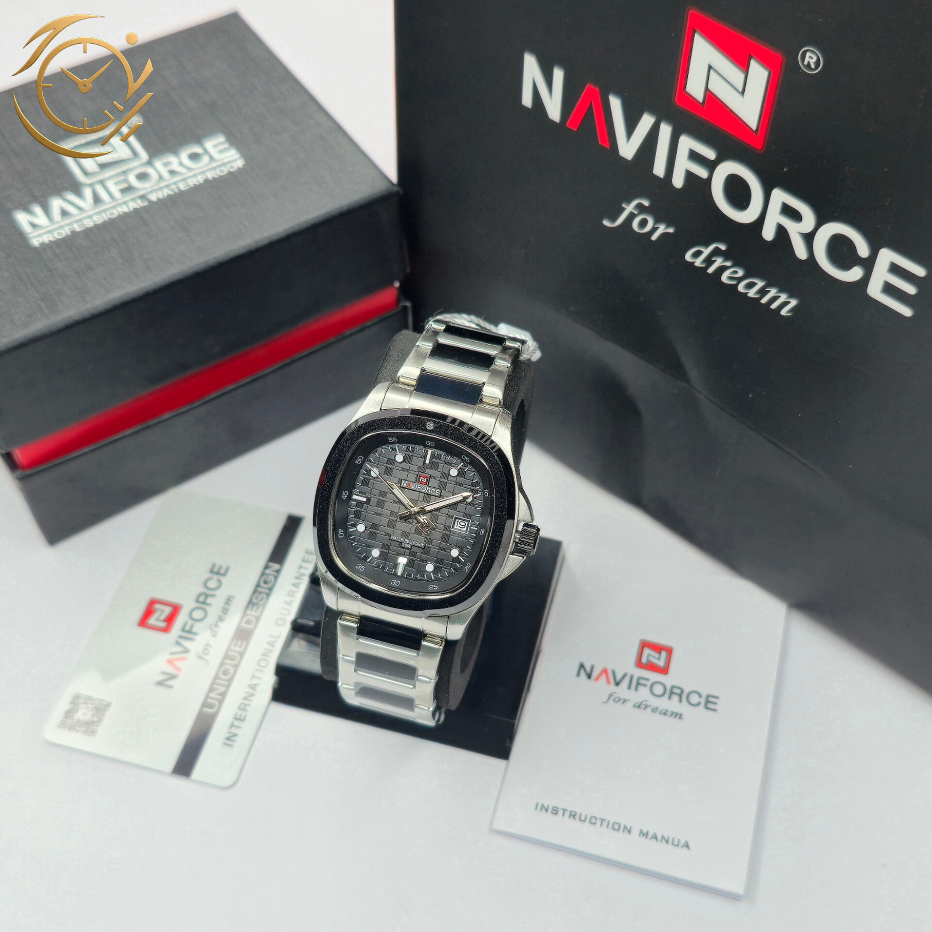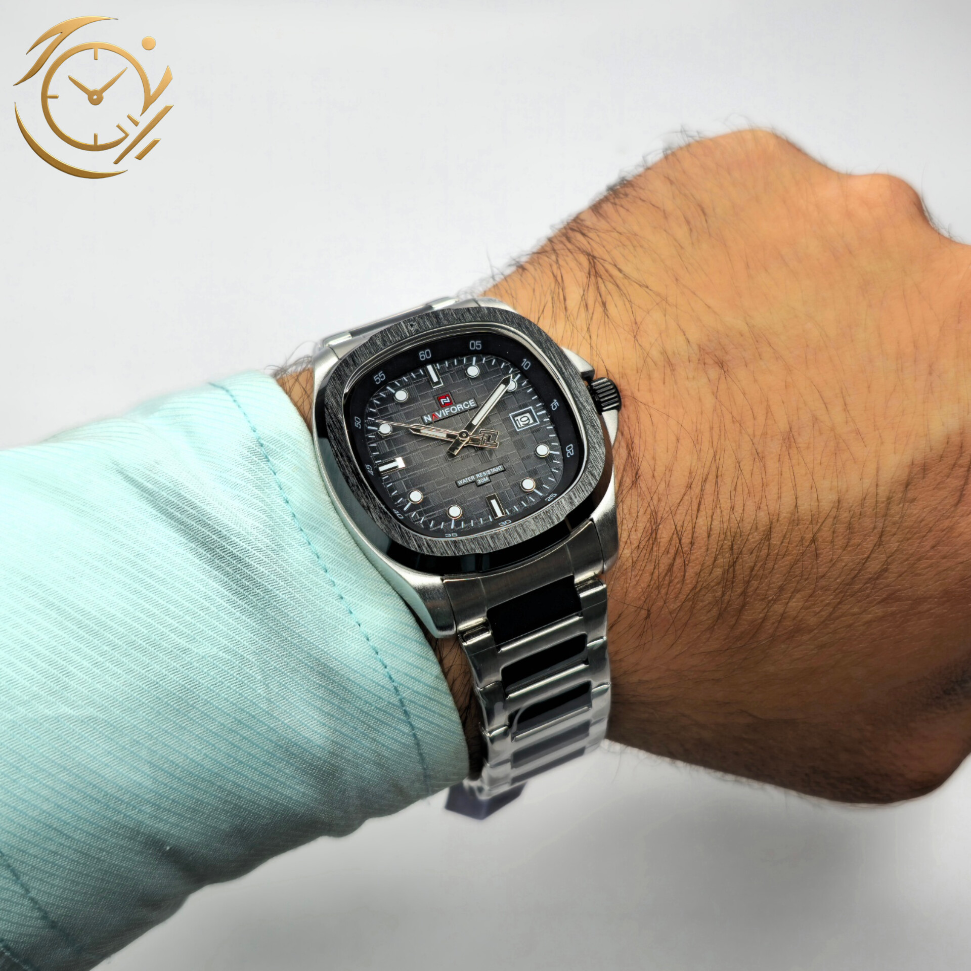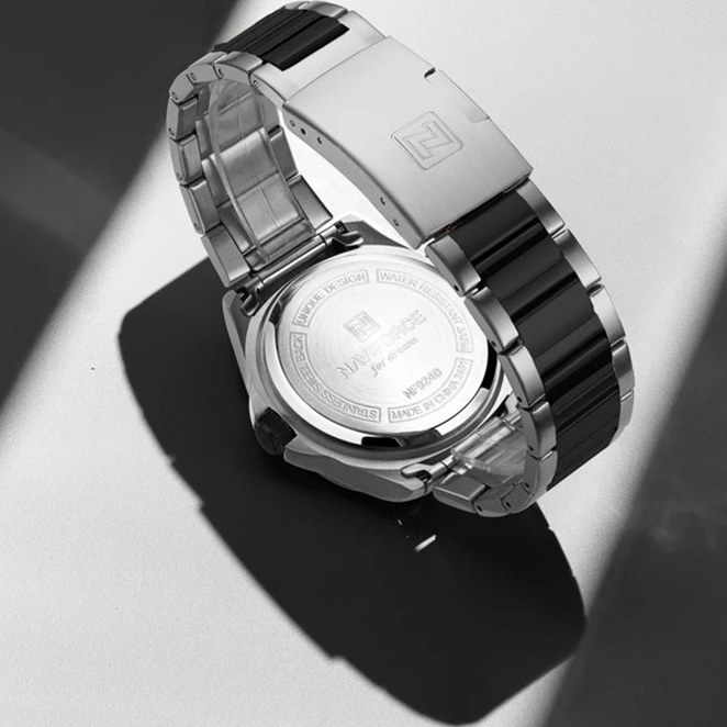 ساعت مچی مردانه Naviforce مدل NF9240 ترکیبی از سبک کلاسیک و طراحی مدرن است که جذابیت و وقار را در هر استایلی افزایش میدهد. این مدل با بند استیل نقرهای–مشکی و صفحه مشکی با قاب نقرهای–مشکی ظاهری شیک و همهپسند دارد که بهراحتی با لباسهای رسمی، اداری یا روزمرهی کلاسیک ست میشود.صفحه مشکی با طراحی مینیمال و جزئیات دقیق، خوانش زمان را ساده و دلپذیر میکند، در حالی که تضاد رنگ نقرهای و مشکی جلوهای لوکس و حرفهای به ظاهر ساعت میبخشد. بند استیل مقاوم و باکیفیت نیز دوام و راحتی بالا را برای استفاده روزمره تضمین میکند.اگر به دنبال ساعت مردانه رسمی، با کیفیت و خوشاستایل از برند Naviforce هستید، NF9240 با طراحی کلاسیک مشکی و نقرهای، انتخابی زیبا، کاربردی و چشمنواز است.