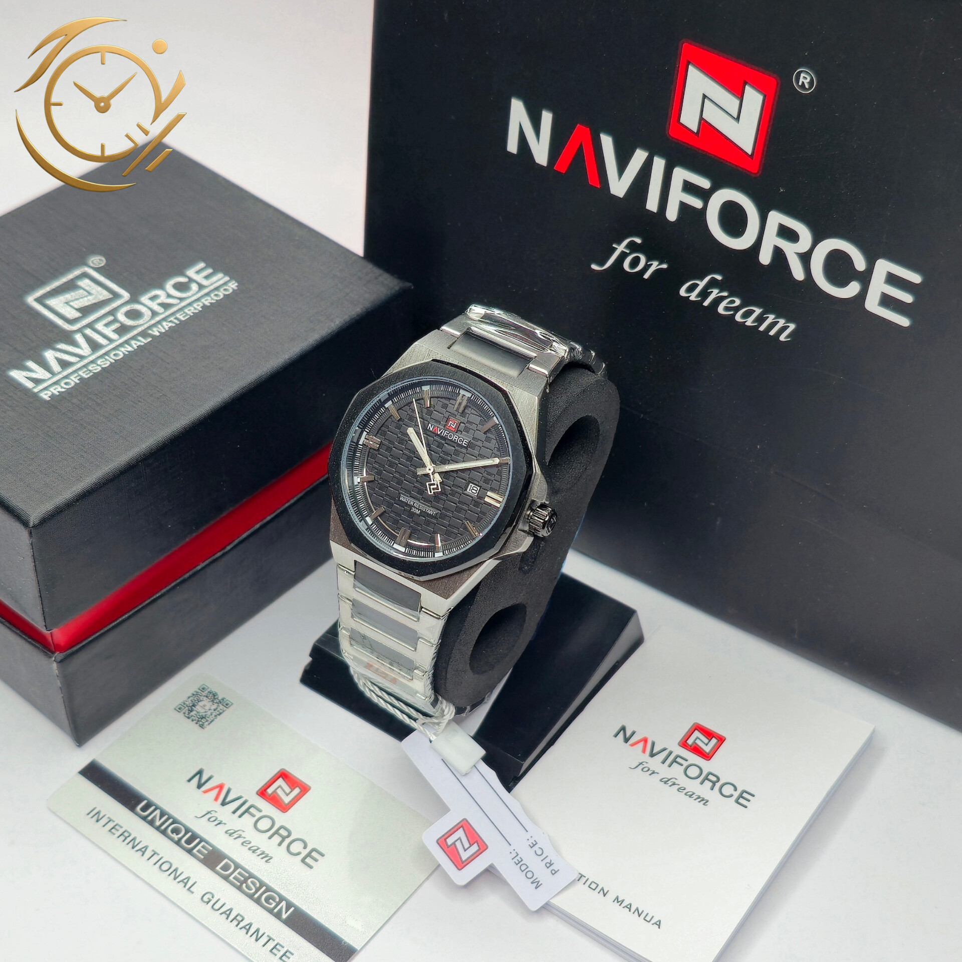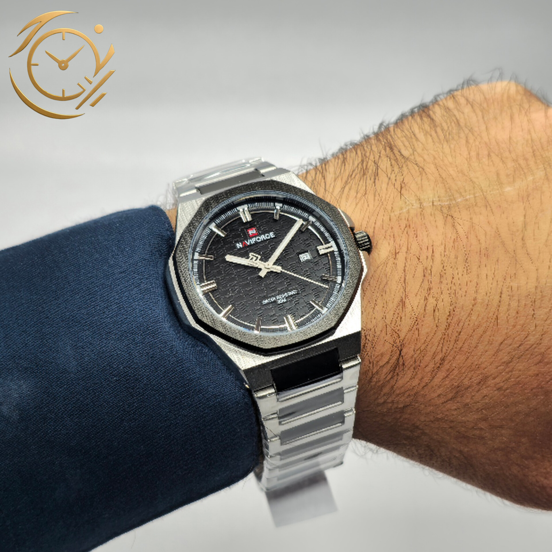 ساعت مچی مردانه Naviforce NF9245 یک مدل اسپرت-کلاسیک و جذاب است که برای آقایانی طراحی شده که به استایل مدرن، مقاوم و شیک اهمیت میدهند. این ساعت با بند استیل دو رنگ نقرهای و مشکی، صفحه مشکی و قاب نقرهای-مشکی ترکیبی چشمگیر و باوقار ارائه میدهد که برای استفاده روزمره، مهمانیها و تیپهای کژوال-رسمی کاملاً مناسب است.بدنه و بند ساعت از استیل ضدزنگ با کیفیت بالا ساخته شده و دوام و مقاومت آن در برابر خط و خش و استفاده روزانه تضمین شده است. طراحی صفحه با عقربهها و جزئیات دقیق، خوانایی بالا و جلوهای مدرن و جذاب ایجاد میکند. مقاومت در برابر ضربه و کیفیت ساخت Naviforce، این مدل را به انتخابی مطمئن برای آقایانی تبدیل کرده که به دنبال ساعت شیک، کاربردی و بادوام هستند.اگر به دنبال یک ساعت مردانه مدرن، مقاوم و اسپرت-کلاسیک هستید که استایل شما را تکمیل کند و همزمان کیفیت و دوام بالایی داشته باشد، Naviforce NF9245 یکی از بهترین گزینهها در میان ساعتهای Naviforce است.