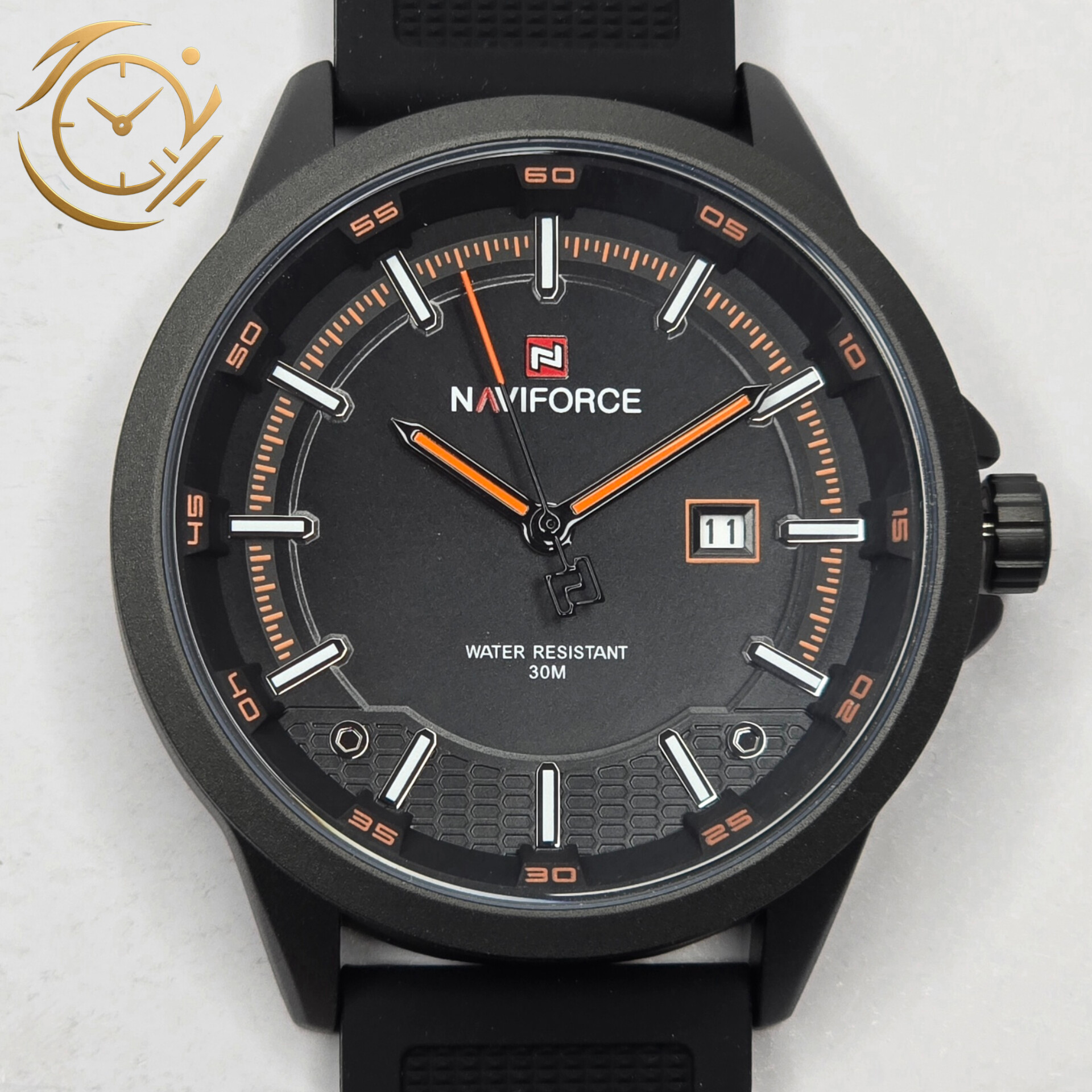 ساعت مچی مردانه Naviforce مدل NF9248 | بند سیلیکونی مشکی، صفحه مشکی نارنجی | اسپرت و مقاوم