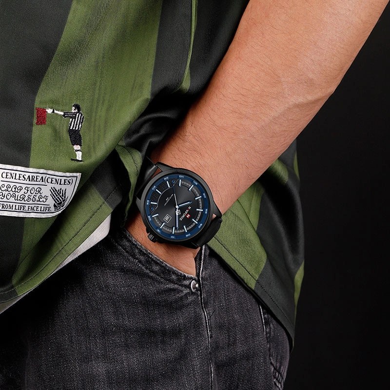 ساعت مچی مردانه Naviforce مدل NF9248 با بند چرمی مشکی و صفحه مشکی–آبی، انتخابی اسپرت و شیک برای آقایانی است که به دنبال ترکیب سادگی و جذابیت هستند. رنگ مشکی کلاسیک بند در کنار جزئیات آبی صفحه، جلوهای مدرن و متفاوت ایجاد میکند و ساعت را برای استایلهای روزمره، شهری و نیمهرسمی ایدهآل میسازد.صفحه واضح و خوانای ساعت تجربه کاربری راحتی ارائه میدهد و بند چرمی نرم، استفاده طولانیمدت را بدون خستگی ممکن میکند. بدنه مقاوم و طراحی مستحکم، NF9248 را به گزینهای قابل اعتماد برای فعالیتهای روزانه و سبک زندگی اسپرت تبدیل کرده است.اگر به دنبال ساعتی هستید که هم کلاسیک باشد و هم یک رنگ برجسته و مدرن داشته باشد، این مدل گزینهای جذاب و کاربردی است.