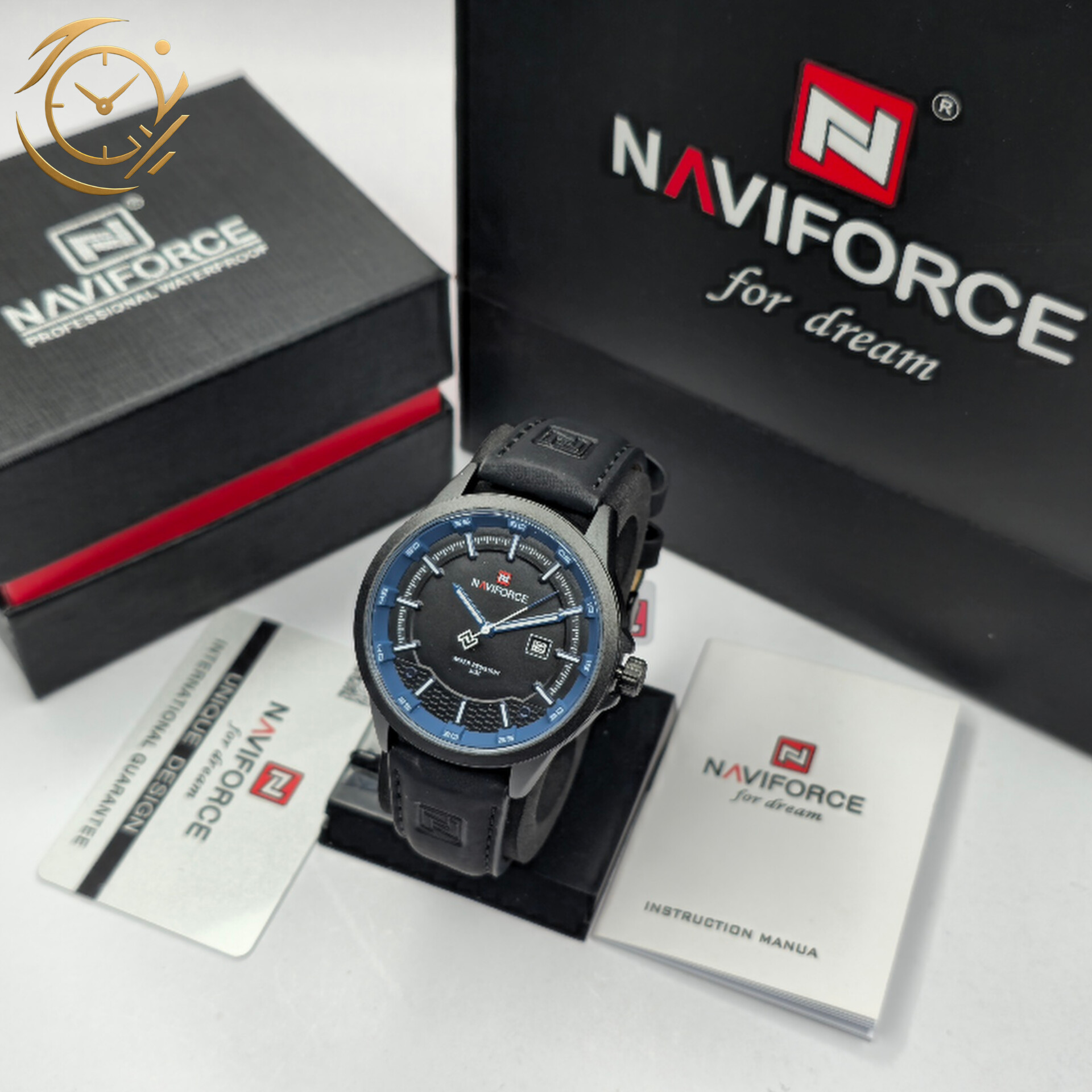 ساعت مچی مردانه Naviforce مدل NF9248 | بند چرمی قهوه ای تیره، صفحه مشکی | اسپرت و مقاوم