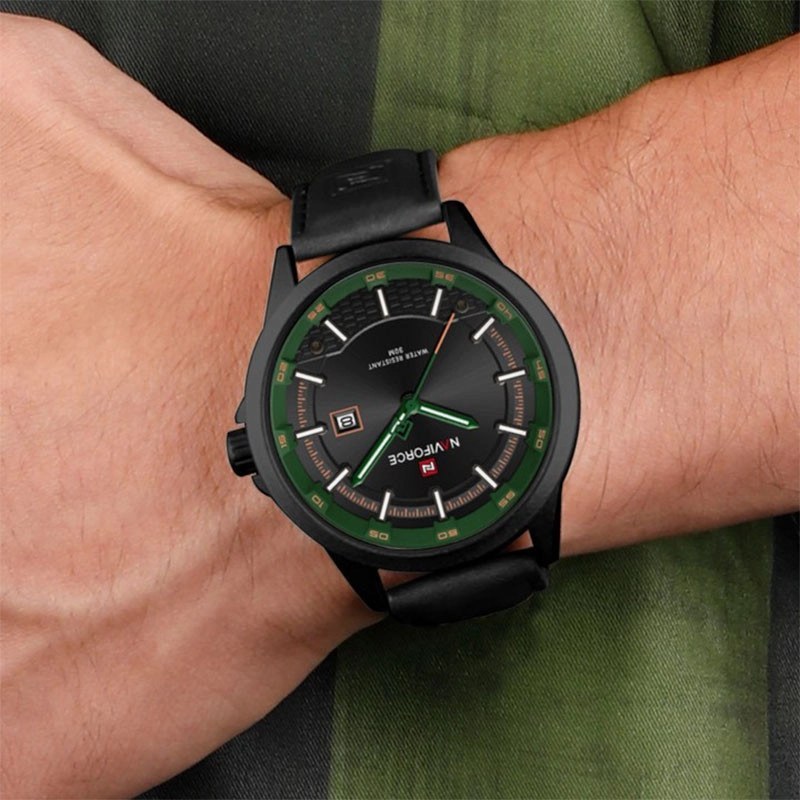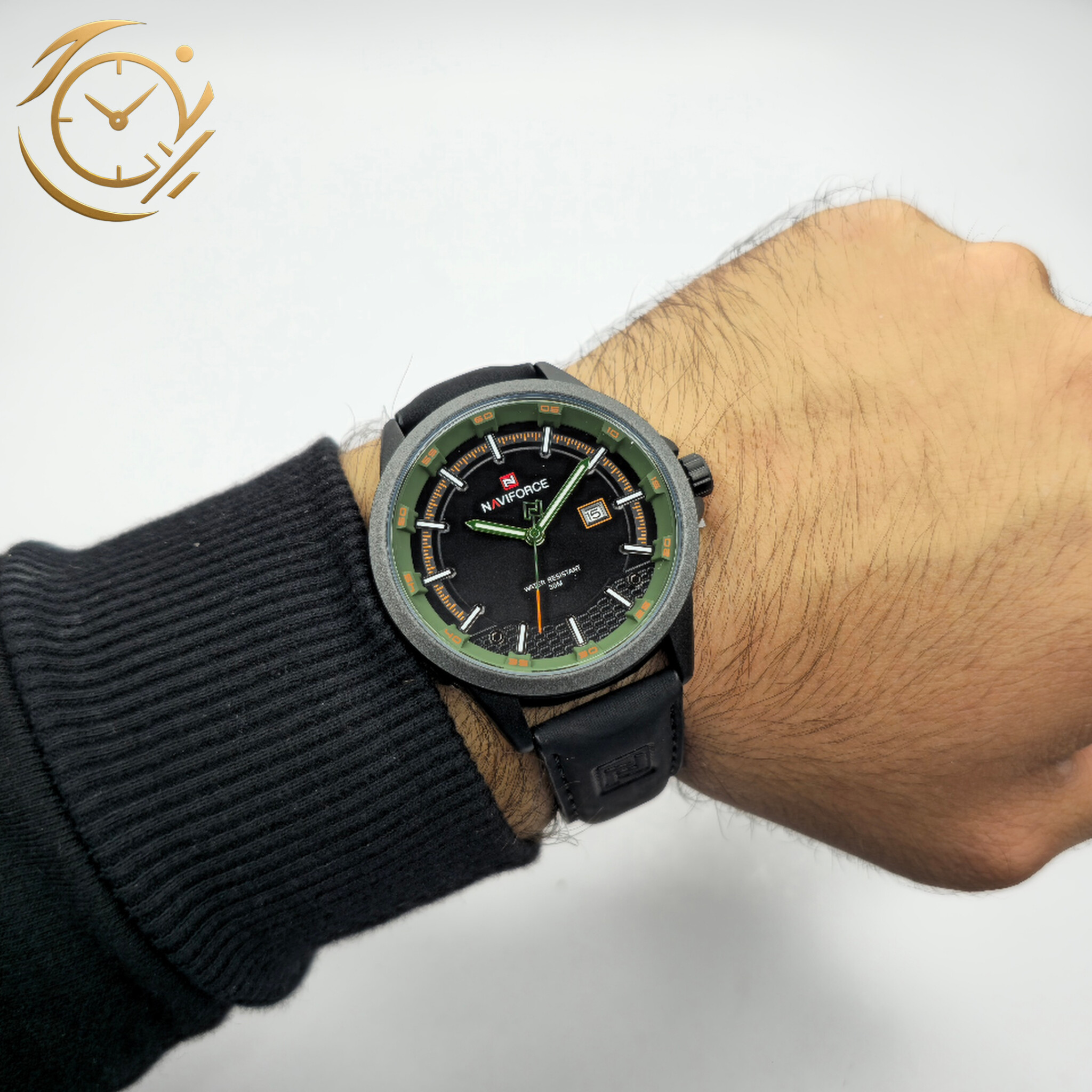 ساعت مچی مردانه Naviforce مدل NF9248 با بند چرمی مشکی و صفحه مشکی–سبز، ترکیبی مدرن و جذاب را ارائه میدهد؛ مدلی که ظاهر اسپرت را با جزئیات رنگی خاص همراه میکند. تضاد ظریف بین پسزمینه تیره و سبز روی صفحه، جلوهای جوانپسند و پویا ایجاد کرده و این ساعت را به گزینهای مناسب برای استایلهای روزمره و شهری تبدیل میکند.بند چرمی مشکی حس جدیت و سادگی را حفظ میکند، در حالی که طراحی صفحه، هویت اسپرت و انرژی این مدل را نشان میدهد. ساختار مقاوم و بدنه محکم، ساعت را برای استفاده طولانیمدت قابلاعتماد میسازد.اگر بهدنبال ساعتی هستید که در عین سادگی، یک نقطه تمایز ظریف داشته باشد، NF9248 با ترکیب مشکی و سبز انتخابی شیک و متفاوت است.