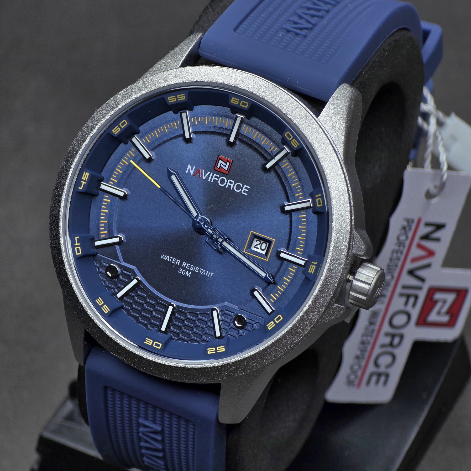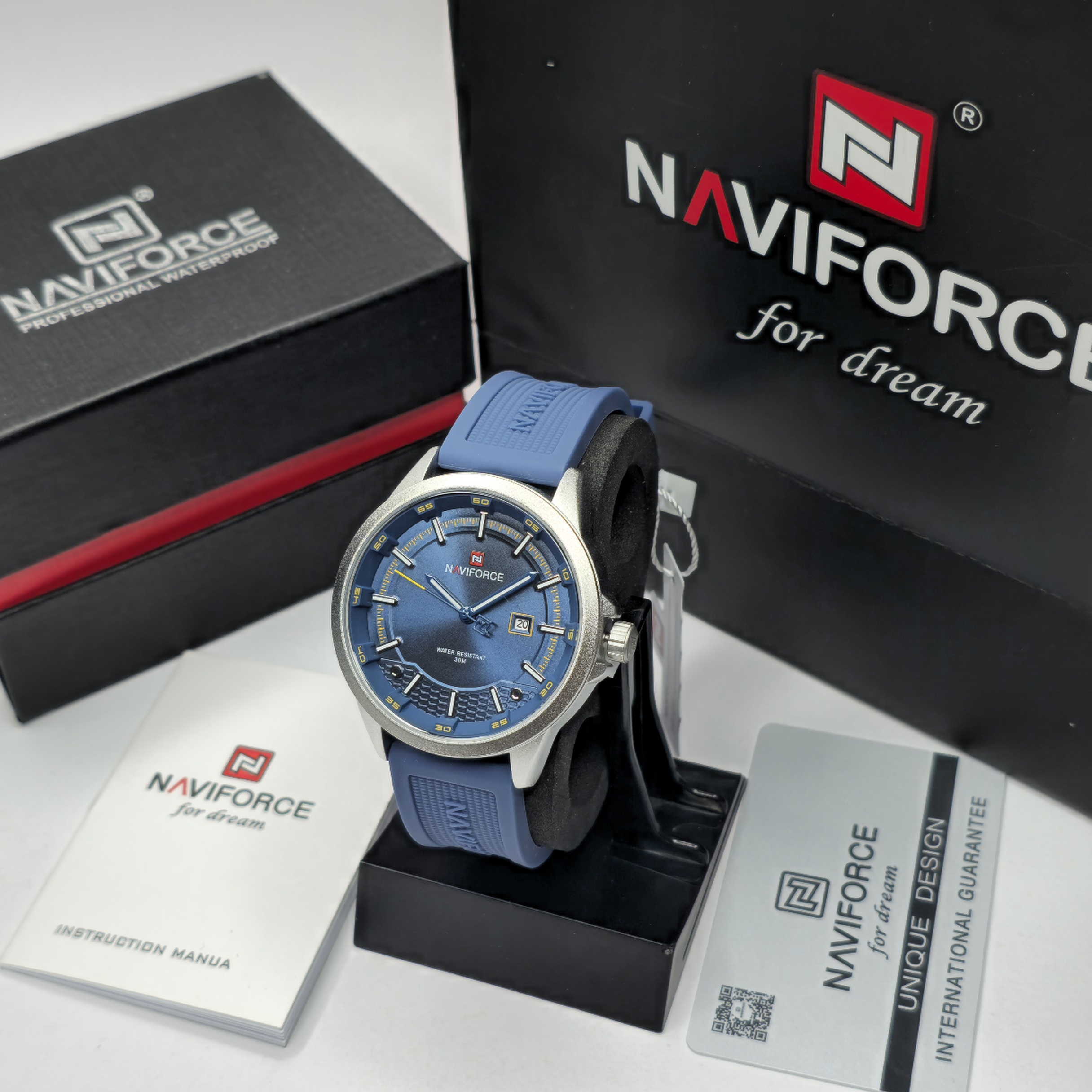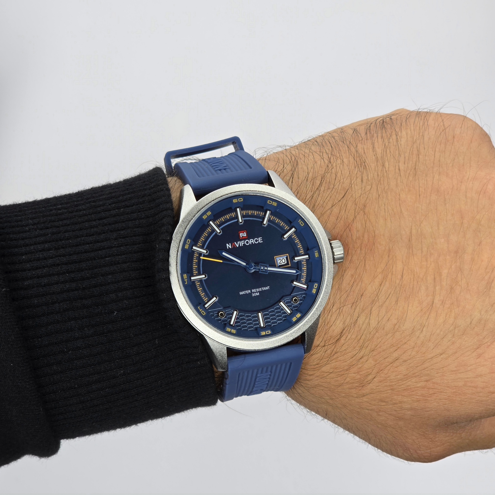 ساعت مچی مردانه Naviforce مدل NF9248 با طراحی اسپرت، جوانپسند و مقاوم، انتخابی ایدهآل برای آقایانی است که به دنبال ساعتی پرانرژی و بادوام هستند. بند سیلیکونی آبی در کنار صفحه آبی جذاب با جزئیات برجسته، ظاهری خاص و مدرن به این مدل داده است؛ مناسب برای استفاده روزمره و فعالیتهای ورزشی.این ساعت مجهز به موتور کوارتز دقیق است و زمان را با نهایت دقت نمایش میدهد. قاب فلزی مقاوم در برابر ضربه و شیشه معدنی ضدخش، دوام بالایی برای استفاده طولانیمدت فراهم میکنند. همچنین با مقاومت در برابر آب تا عمق 3ATM، ساعت در برابر رطوبت و پاشش آب مقاوم است.طراحی سبک و راحت بند سیلیکونی باعث میشود این مدل حتی در استفاده طولانی احساس خستگی ایجاد نکند. ترکیب رنگ آبی براق با جزئیات نقرهای، جلوهای مدرن و خاص به استایل شما میبخشد.Naviforce NF9248 نماد استقامت و جسارت است؛ ساعتی که هم برای ورزش و هم برای استایل روزمره، ظاهری متفاوت و قدرتمند به شما میدهد.