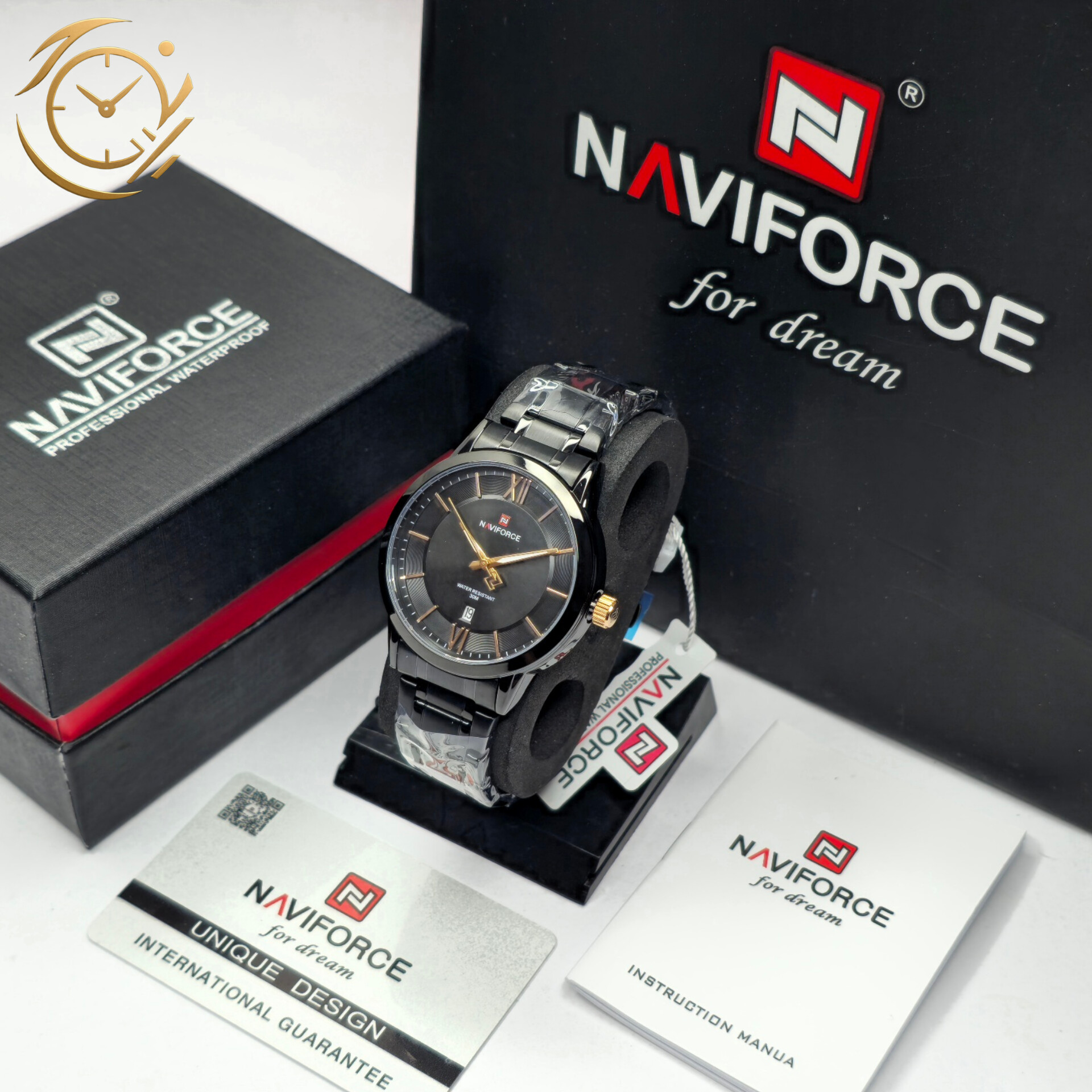 ساعت مچی مردانه Naviforce مدل NF9254 یک انتخاب شیک و کاربردی برای آقایانی است که به استایل رسمی و کلاسیک اهمیت میدهند. این ساعت با بند استیل ضدزنگ مشکی و صفحه مشکی با جزئیات طلایی، جلوهای لوکس و مردانه به استایل شما میبخشد. بدنه مقاوم، شیشه بادوام و موتور دقیق کوارتز، دقت و کیفیت را در کنار زیبایی تضمین میکند. ساعت مردانه ناویفورس NF9254 گزینهای ایدهآل برای استفاده روزمره، محیط کار و مجالس رسمی است و میتواند یک هدیه خاص و ارزشمند برای آقایان خوشسلیقه باشد. ترکیب رنگ مشکی و طلایی این مدل را به یکی از محبوبترین ساعتهای کلاسیک مردانه تبدیل کرده است.