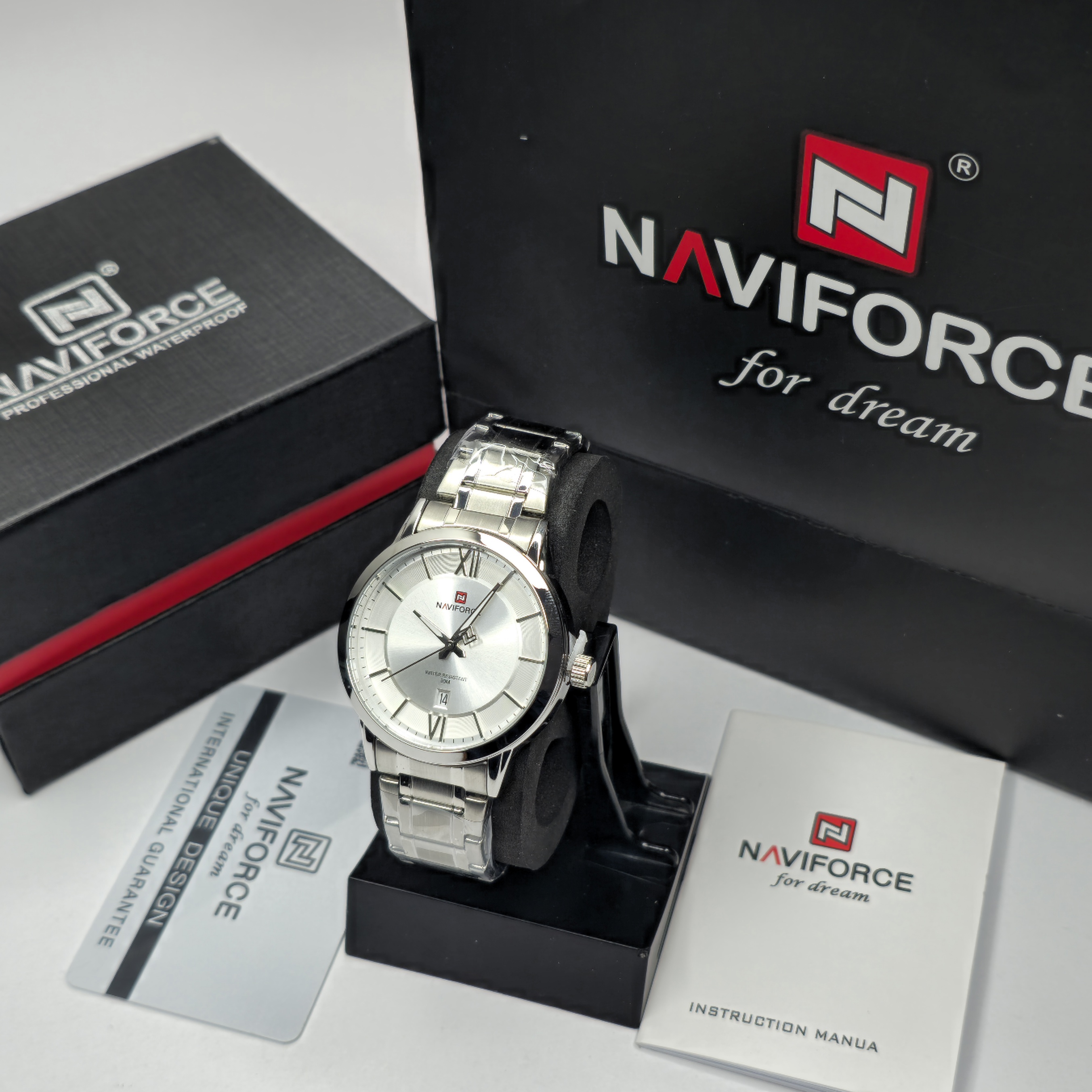 وقتی صحبت از سادگی در عین جذابیت میشود، نام Naviforce NF9254 میدرخشد. این ساعت با صفحه سفید مینیمال و بند استیل نقرهای براق، جلوهای از اصالت و وقار مردانه را به نمایش میگذارد. طراحی آن مخصوص آقایانی است که استایل رسمی را با حس اعتمادبهنفس و دقت در جزئیات همراه میکنند.قاب مقاوم از آلیاژ مستحکم، شیشهی معدنی ضدخش و موتور کوارتز باکیفیت، تضمینکنندهی دوام و عملکرد دقیق این مدل هستند. نمایشگر تاریخ روی صفحه، علاوه بر زیبایی بصری، کاربرد روزانهی ساعت را نیز افزایش داده است. همچنین مقاومت در برابر آب تا ۳ اتمسفر (3ATM) خیال شما را از بابت استفاده در موقعیتهای روزمره راحت میکند.مدل NF9254 با ترکیب هوشمندانهی رنگهای روشن و فلزی، انتخابی ایدهآل برای محیط کار، جلسات رسمی یا استایل روزانهی لوکس است. ساعتی که با هر نگاه، حس نظم، سلیقه و اعتماد را منتقل میکند.