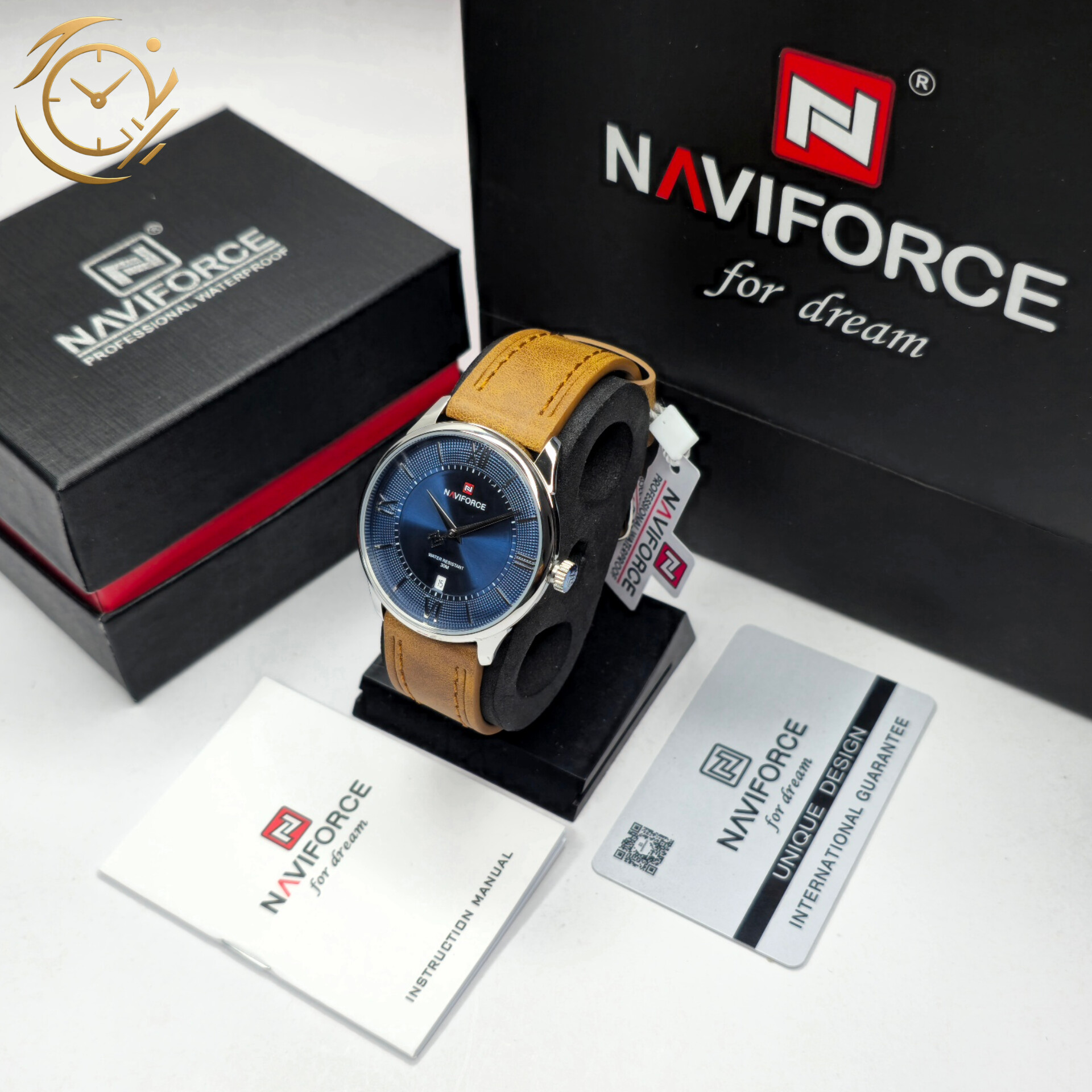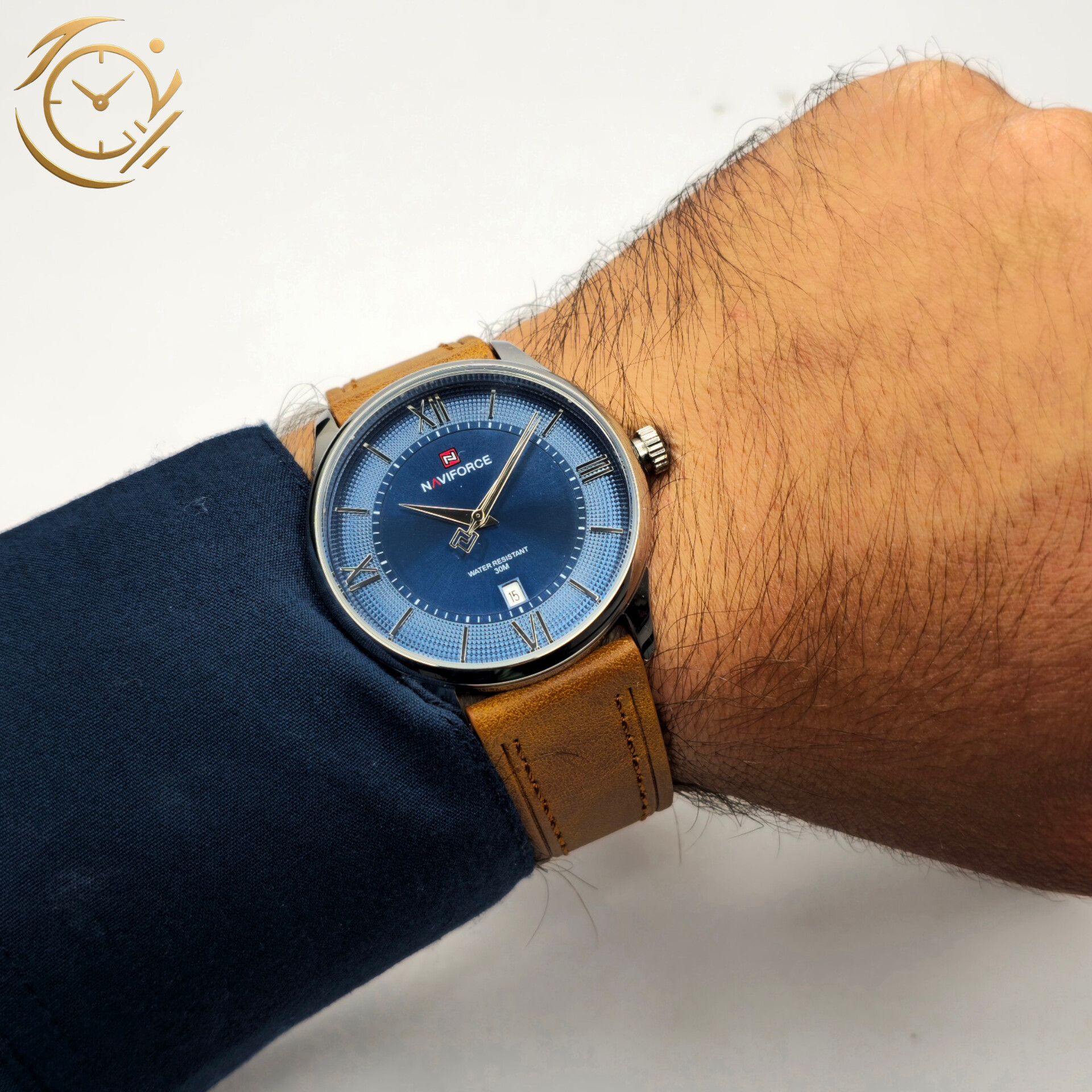 ساعت مچی مردانه Naviforce مدل NF9272 انتخابی کلاسیک و رسمی برای آقایانی است که به استایل شیک و متمایز اهمیت میدهند. صفحه آبی در کنار بند چرمی قهوهای روشن ترکیبی چشمگیر، لوکس و حرفهای ایجاد میکند که بهراحتی با پوششهای رسمی، نیمهرسمی و روزمره ست میشود.این مدل به موتور کوارتز دقیق Naviforce مجهز شده و عملکردی قابلاعتماد در استفاده روزانه ارائه میدهد. بند چرمی با کیفیت بالا و دوخت تمیز، راحتی و دوام مناسبی برای استفاده طولانیمدت فراهم میکند. صفحه آبی با عقربهها و نشانگرهای واضح، خوانایی بالا و جلوهای کلاسیک به ساعت میبخشد.اگر بهدنبال ساعتی مردانه، کلاسیک و باکیفیت هستید که جلوهای شیک و حرفهای به استایل شما بدهد، Naviforce NF9272 انتخابی هوشمندانه و چشمنواز خواهد بود.