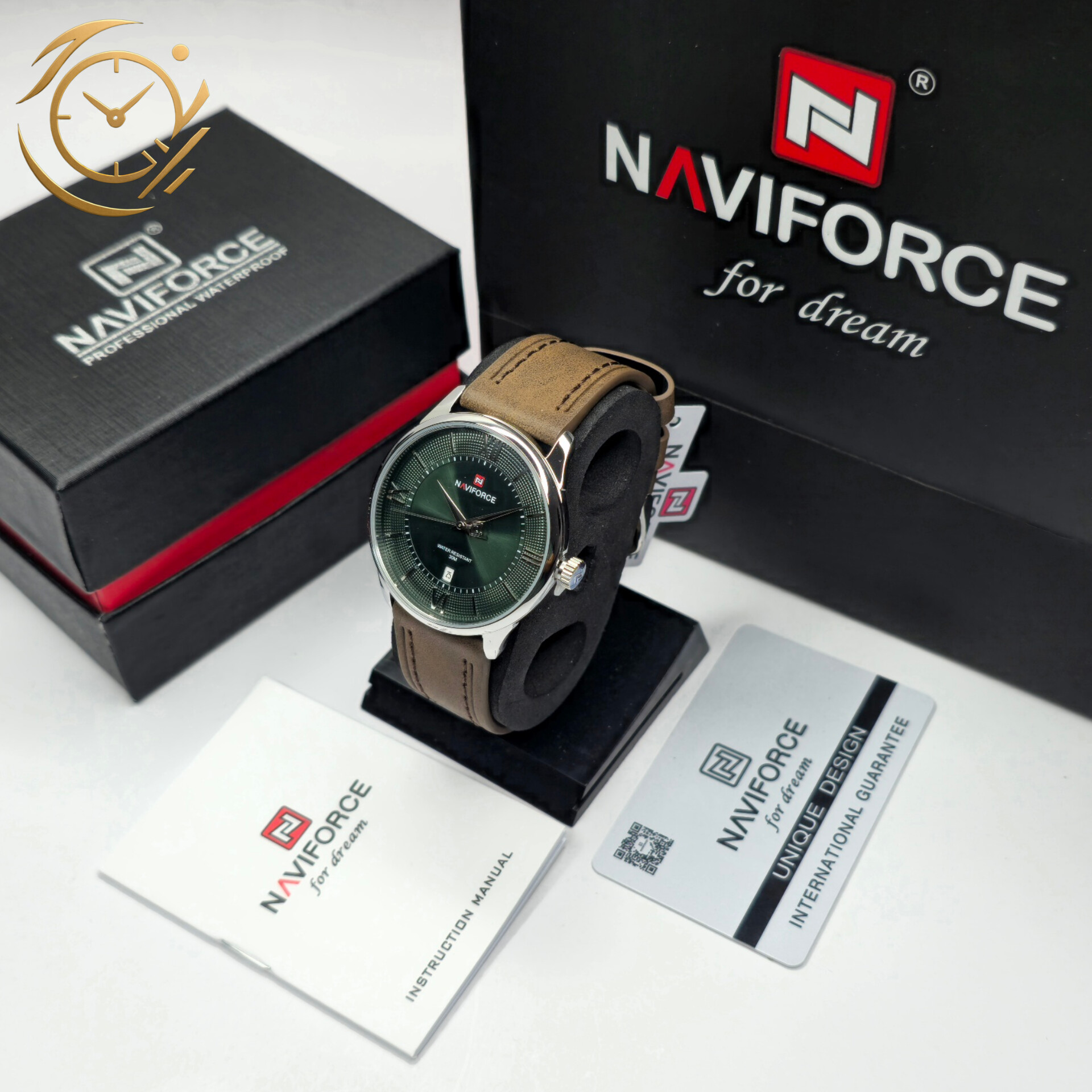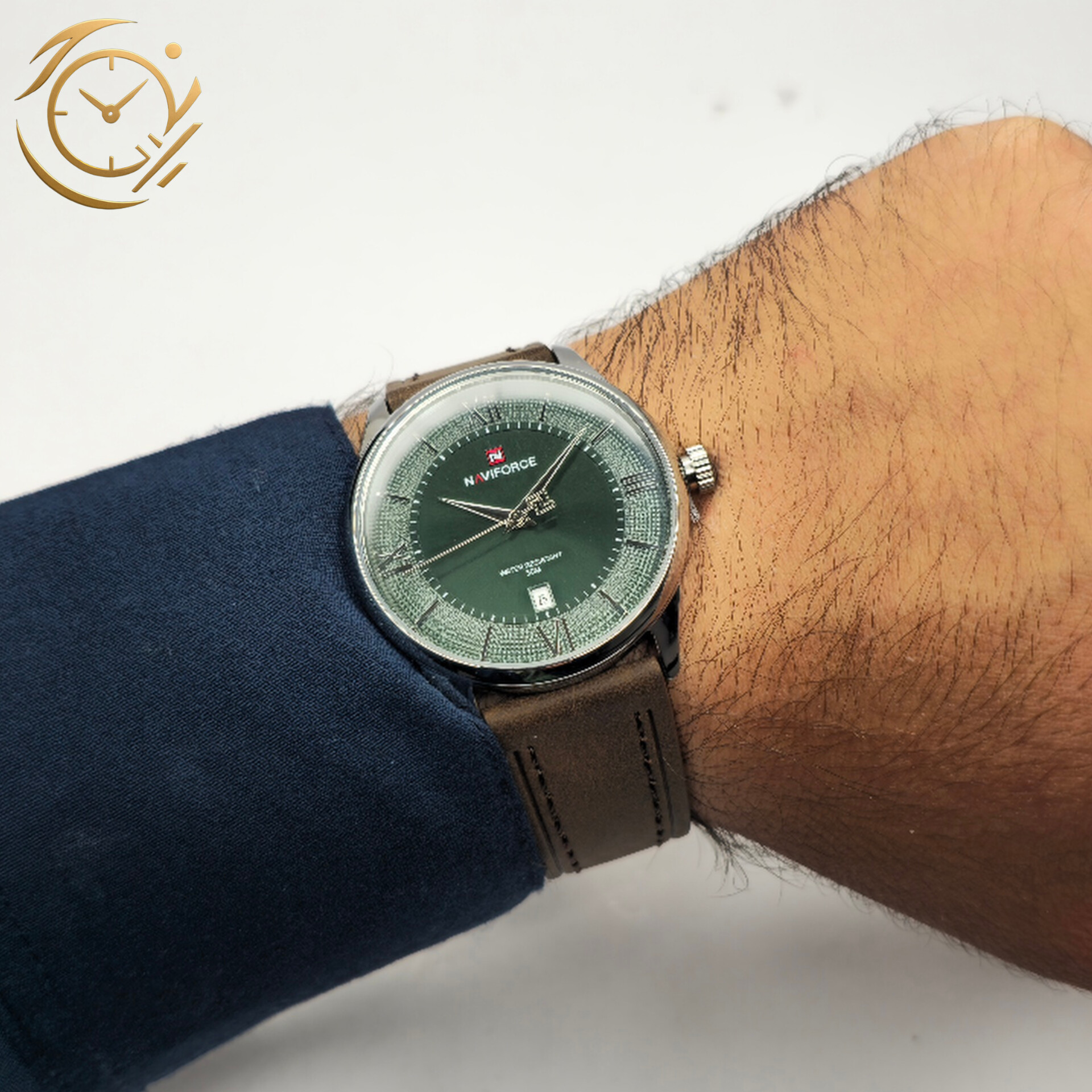 ساعت مچی مردانه Naviforce مدل NF9272 انتخابی کلاسیک و رسمی برای آقایانی است که به استایل شیک و متفاوت اهمیت میدهند. صفحه سبز در کنار بند چرمی قهوهای تیره ترکیبی لوکس و ماندگار ایجاد میکند که بهراحتی با پوششهای رسمی، نیمهرسمی و استایلهای روزمره هماهنگ میشود.این مدل به موتور کوارتز دقیق Naviforce مجهز شده و عملکردی قابلاعتماد در استفادهی روزانه ارائه میدهد. بند چرمی با کیفیت بالا و دوخت تمیز، راحتی و دوام مناسبی برای استفاده طولانیمدت فراهم میکند. صفحه سبز با عقربهها و نشانگرهای واضح، خوانایی عالی و جلوهای متمایز به ساعت میبخشد.اگر بهدنبال ساعتی مردانه، کلاسیک و باکیفیت هستید که جلوهای متفاوت و حرفهای به استایل شما بدهد، Naviforce NF9272 انتخابی هوشمندانه و چشمنواز خواهد بود.