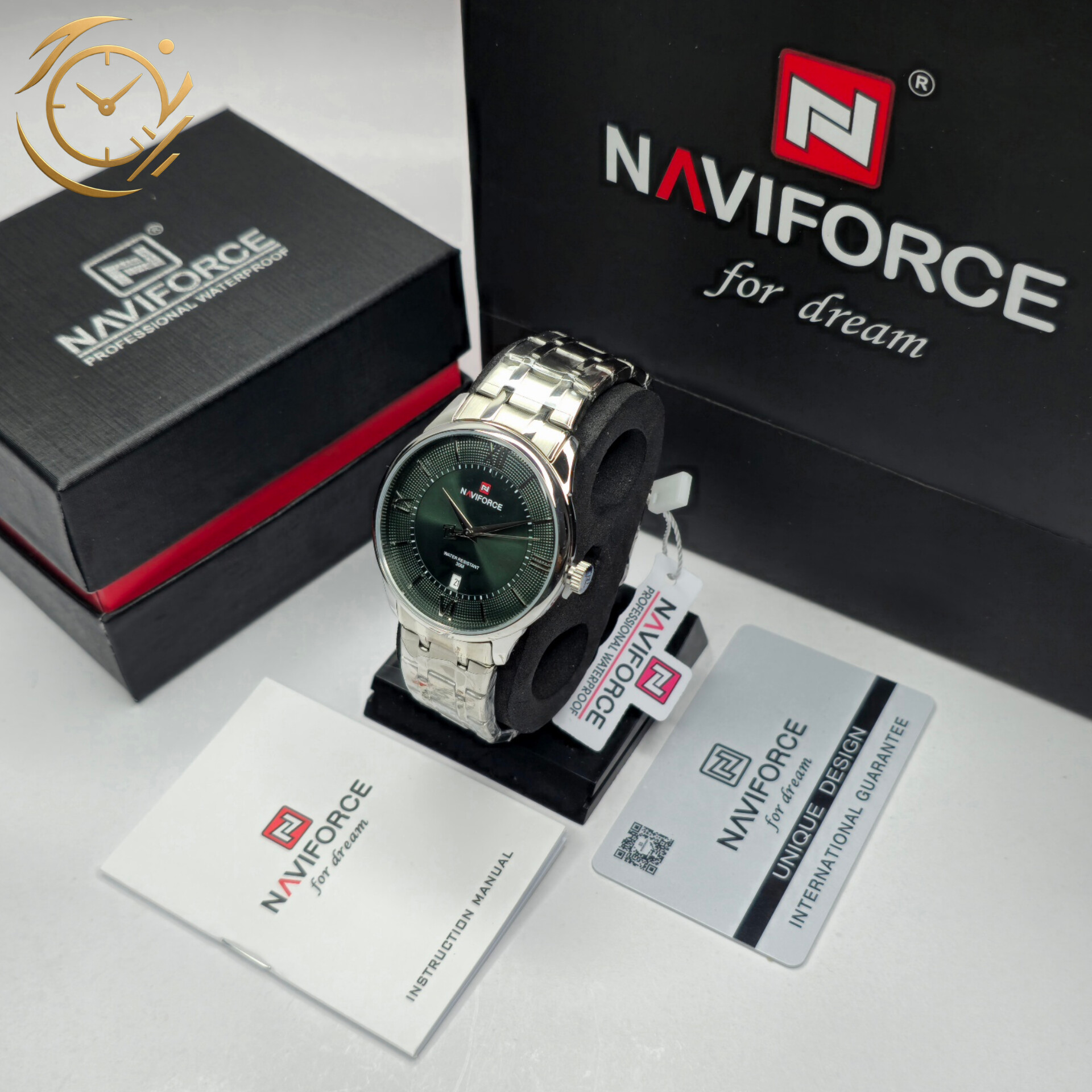 ساعت مچی مردانه Naviforce مدل NF9272 انتخابی کلاسیک و رسمی برای آقایانی است که به استایل شیک، لوکس و متمایز اهمیت میدهند. صفحه سبز در کنار بند استیل نقرهای جلوهای چشمگیر و حرفهای ایجاد میکند که بهراحتی با پوششهای رسمی، نیمهرسمی و حتی استایل روزمره ست میشود.این مدل به موتور کوارتز دقیق Naviforce مجهز شده و عملکردی قابلاعتماد در استفاده روزانه ارائه میدهد. بند استیل با کیفیت بالا و طراحی مقاوم، دوام و راحتی مناسبی برای استفاده طولانیمدت فراهم میکند. صفحه سبز با عقربهها و نشانگرهای واضح، خوانایی بالا و جلوهای کلاسیک به ساعت میبخشد.اگر بهدنبال ساعتی مردانه، کلاسیک و باکیفیت هستید که جلوهای لوکس و حرفهای به استایل شما بدهد، Naviforce NF9272 انتخابی هوشمندانه و چشمنواز خواهد بود.