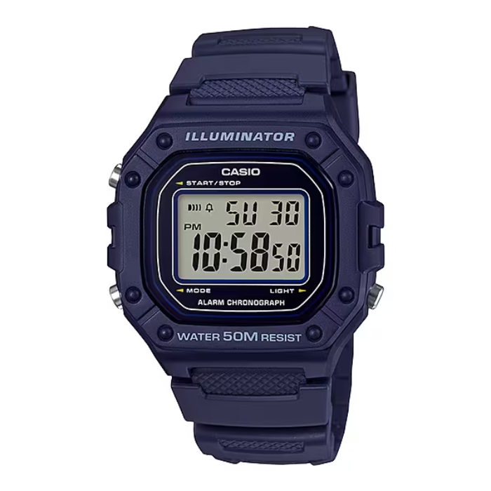 ساعت مچی مردانه Casio مدل W-218H-2AVDF انتخابی ایدهآل برای آقایانی است که به دنبال ترکیب استایل اسپرت، کیفیت بالا و طراحی مینیمال هستند. این مدل با بند رزینی سرمهایرنگ و صفحه دیجیتال، ظاهری جوانپسند و پرانرژی دارد که بهراحتی با تیپهای روزمره یا ورزشی ست میشود.بند سبک و مقاوم این ساعت حس راحتی را حتی در استفاده طولانیمدت فراهم میکند و در برابر رطوبت و ضربه نیز مقاومت بالایی دارد. قاب مشکی با جزئیات آبی تیره جلوهای مدرن و خاص به ساعت بخشیده و طراحی ساده اما کاربردی صفحه نمایش باعث میشود زمان و سایر اطلاعات بهوضوح دیده شوند.Casio W-218H-2AVDF یکی از مدلهای پرفروش سری اسپرت کاسیو است که دوام، دقت و ظاهر جذاب را در کنار هم ارائه میدهد. این ساعت برای افرادی ساخته شده که سبک زندگی فعال دارند و به ساعتی نیاز دارند که در کنار زیبایی، کارایی هم داشته باشد.اگر به دنبال یک ساعت دیجیتال خوشدست، مقاوم و درعینحال شیک هستید، مدل W-218H-2AVDF از برند معتبر Casio بهترین گزینه برای شماست. هماکنون میتوانید این ساعت را با ضمانت اصالت و بستهبندی اورجینال از فروشگاه Miliwatch تهیه کنید.