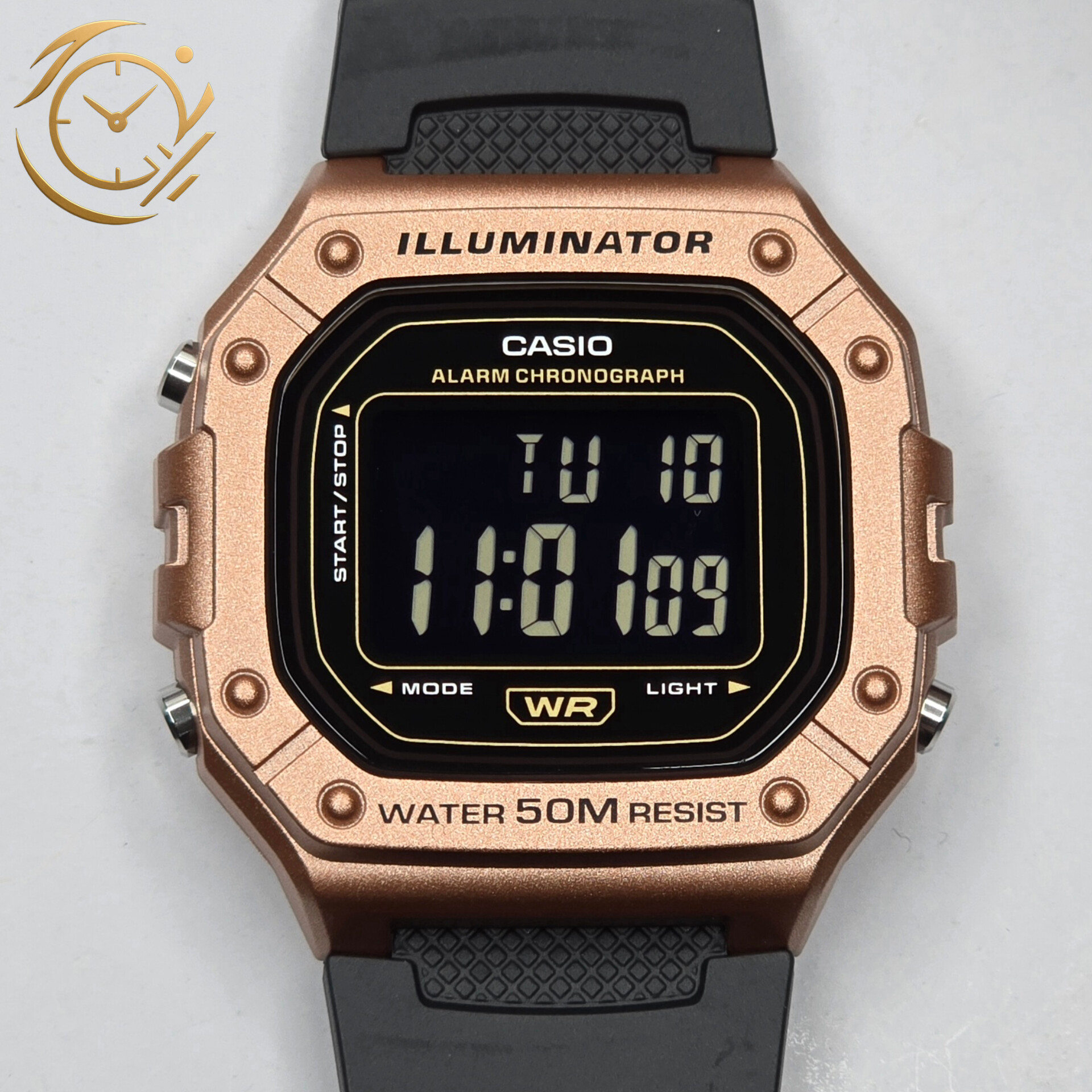 ساعت مچی Casio مدل W-218H-3AV | بند رزینی مشکی، قاب سبز ارتشی، دیجیتال | اسپرت و مقاوم